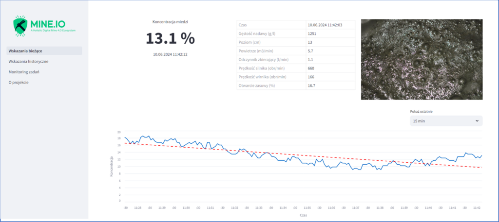 The Polish part of the Mine.io project consortium (Team) consists of Łukasiewicz – ITR, KGHM, Łukasiewicz – EMAG and AGH. Our efforts are focused on the new approach to optimisation of the flotation technology. These activities are carried out as part of Task T4.3 within Work Package 4 of the Mine.io project. It is based on application of the Machine Learning (ML) and (AI) technologies for the assessment of a flotation froth image for the prediction of the froth content. Such approach will help us to understand the flotation process and to find the better way for this process optimisation.
