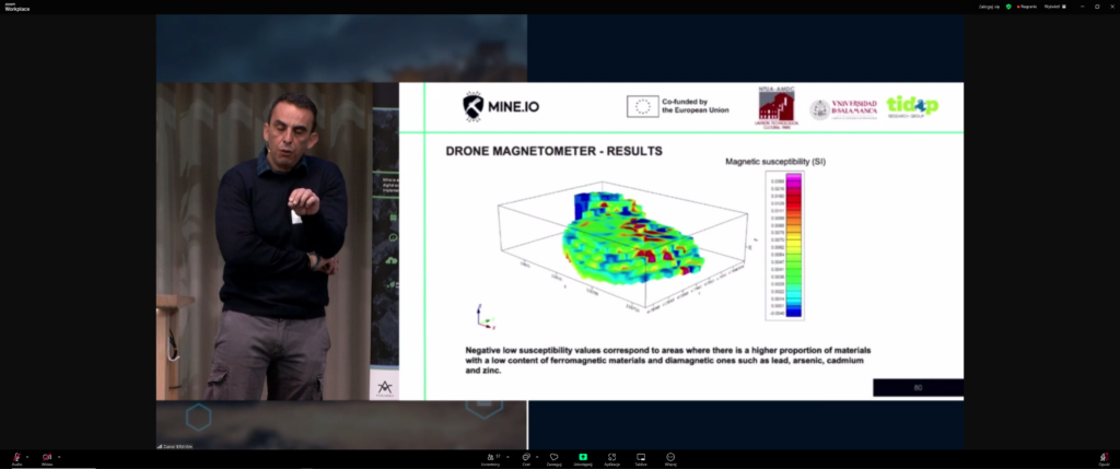 In between sessions during the Mine.io Workshop, there was time to view a video that highlighted selected technologies being developed within MINE.IO project. The exhibition included a demonstration of the test use of drones equipped with hyperspectral cameras, which, combined with advanced drone magnetometry and advanced satellite methods (e.g. InSAR) and GPR, allowed for the accurate characterisation of the area of waste deposits surveyed at the Lavrion pilot site. Viewers were guided through the exhibition at Lavrion by Diego Gonzalez Aqulera, Katerina Margariti and Vasileios T. Protonotarios