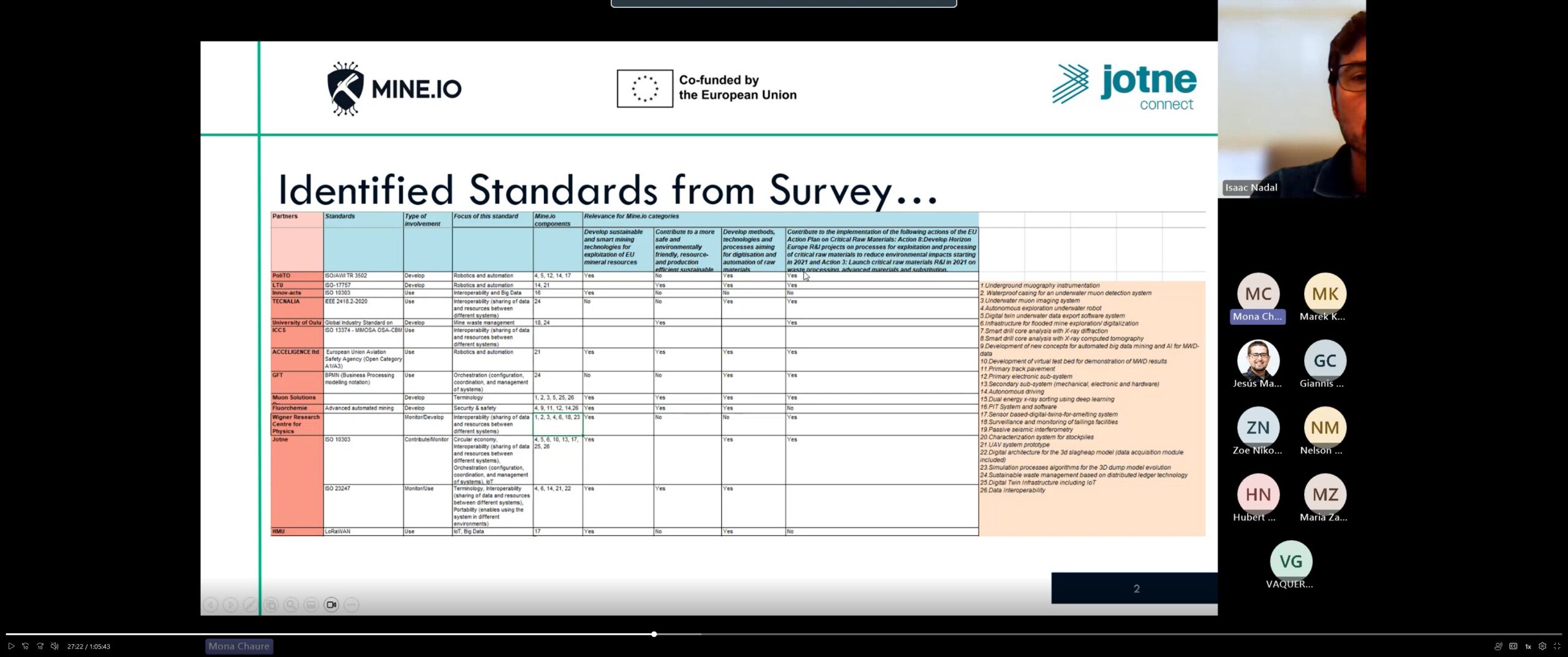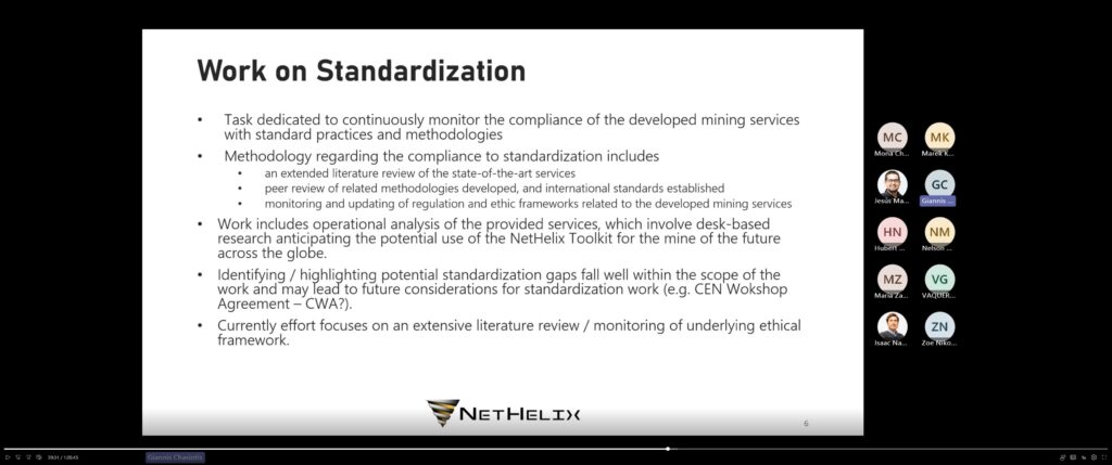 On September 4th, 2024, an online workshop was held, bringing together all four sister projects within the Smart EcoMine Hub: MASTERMINE, DINAMINE, MINE.IO, and NETHELIX. This event was part of the ongoing collaboration between the projects, with its primary focus on discussing standardisation topics, which are an integral aspect of each initiative.