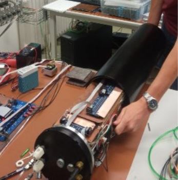 In the context of MINE.IO we are applying muography in flooded mines. Closed mines may still contain valuable resources which can be explored using these new methodologies, in compliance with eco-efficient technological solutions for ore sourcing. The prototype of a sealed muon detector is ongoing with successful results and soon to be tested in a Pilot site located in Portugal.