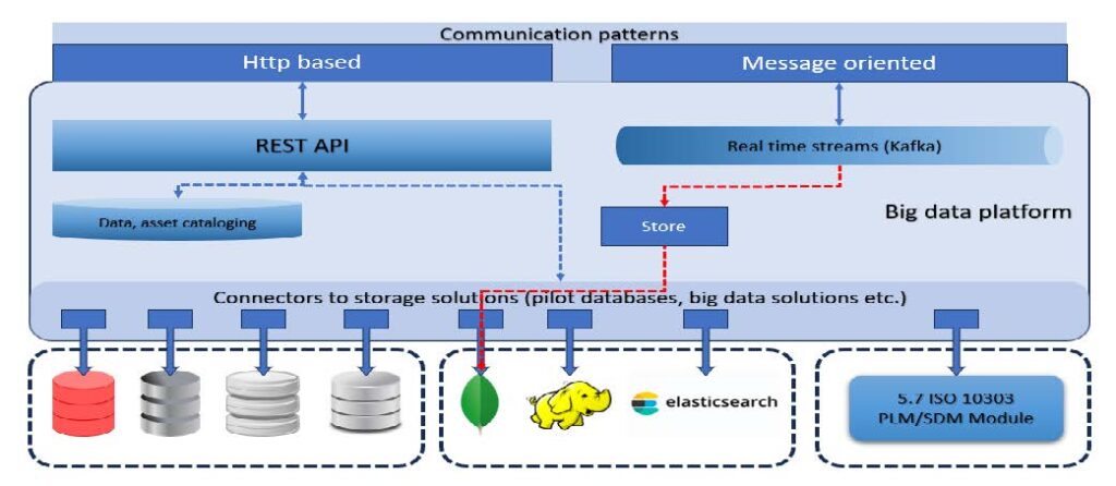 In essence, the Platform delivers a robust architecture supporting distributed data repositories, via asynchronous communication for real-time data streaming and synchronous communication for historical data access, providing versatile connectors for system integration. This ensures real-time data availability and discoverability, enabling cross-departmental and multifaceted functions collaboration, empowering the mining operations to acquire, manage, and retrieve huge volumes of heterogeneous data—from exploration to production—within a unified and secure environment. By leveraging the seamless communication across systems and operations, the Platform facilitates data-driven decision-making, resulting in improving the mining process operational continuity, enabling smooth integration from traditional systems to digital ecosystems.