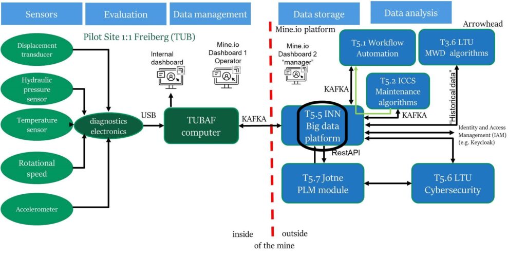 As part of the work carried out in work package WP5, the architecture of the MINE.IO platform was designed. A key component of this Big Data Platform architecture is currently being used in one of the key use cases implemented as a pilot installation at TUBAF Freiberg.