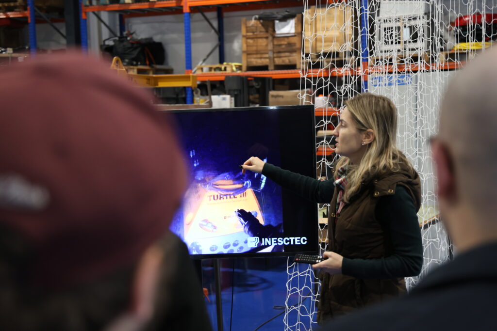 During these sessions, participants explored INESC TEC’s capabilities in aerial, maritime, and submersible robotic systems. The focus was on underwater robotics — a central component of MINE.IO’s technological ecosystem.